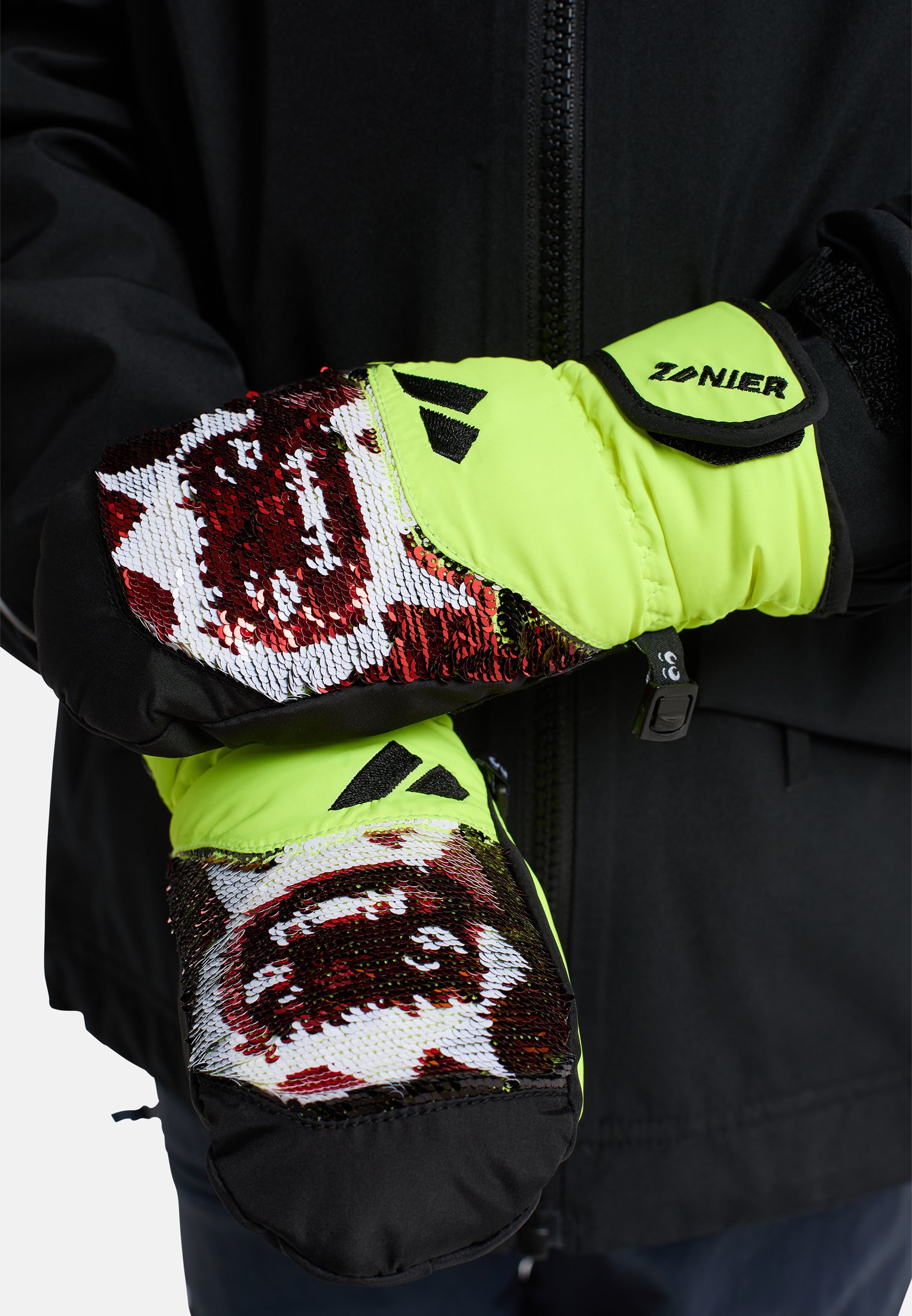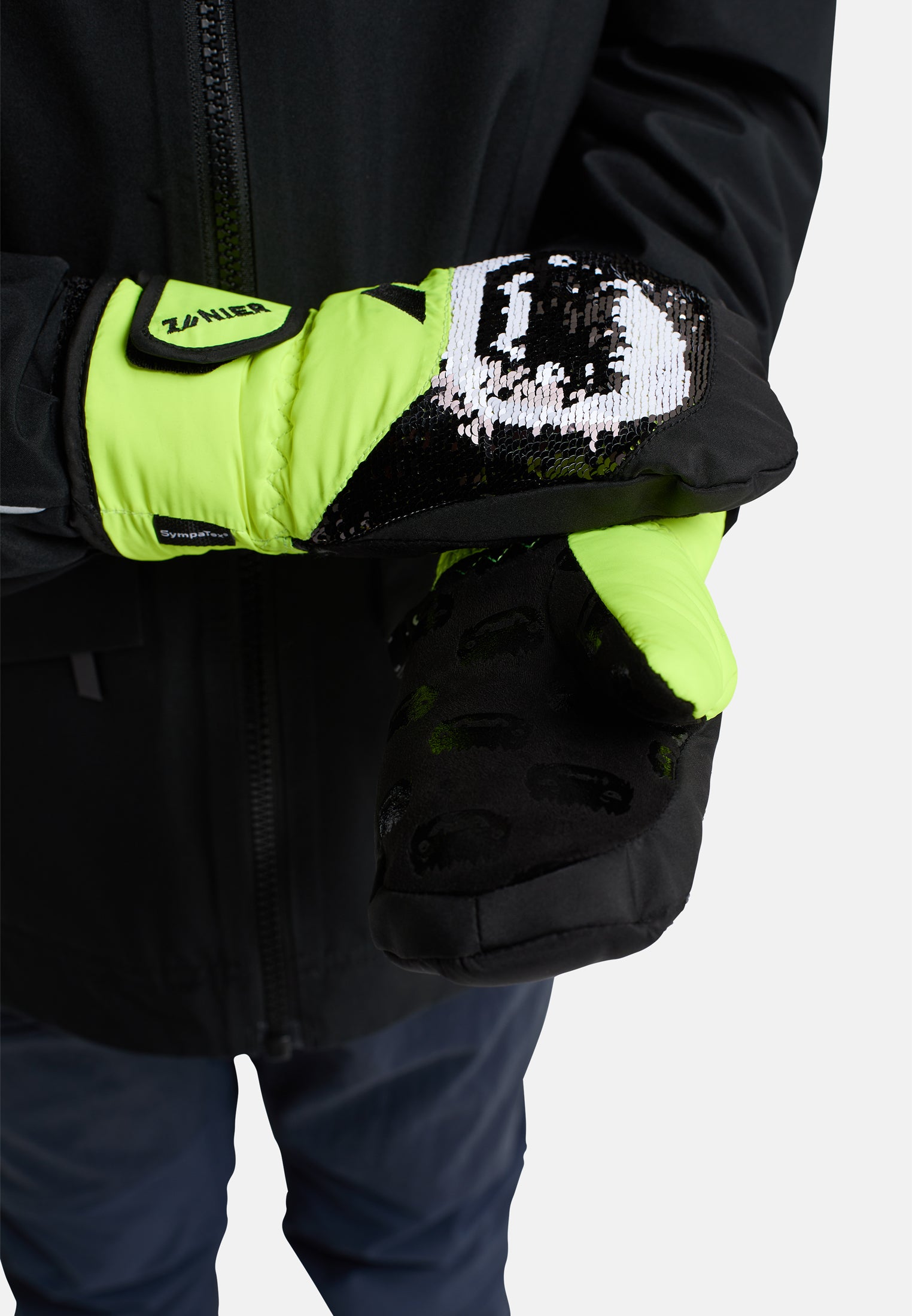 Was Schneeabenteurer brauchen: Zuverlässige Wärme und Wasserdichte, clevere Verschlusslösungen und natürlich einen Look, der Spaß macht! GRUMPY.STX mit wasserdichter SYMPATEX® Membran und warmer LOFT Isolierung schützt den ganzen Tag. Praktischer Klett-Verschluss und robuste PU-Innenhand. Blickfang: Die lustige Pailletten-Stickerei auf dem Handrücken, die sich durch Darüberwischen verändert.